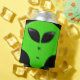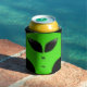Green Alien Head Can Cooler. Cool extraterrestrial ripple alien head with two black eyes, two dots nose holes and striped mouth can cooler. A great out of this world alien U.F.O. themed party and Area 51 alien vistors fans!