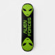 Green alien head logo custom design skateboard deck. Cool wooden skate board design for boys and girls. Fun Birthday gift idea for kids. Personalise with your own unique name, funny quote or monogram letters. Unique rare Birthday gift idea for skater son, grandson, nephew, cousin, daughter, sister, brother, friends, coach etc. Funny extraterrestrial life form emoticon / emoji with customisable background colour and template text. Also nice as Christmas Holiday present for children. Upload your own weird logos or outer space graphics optionally.