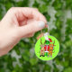 An other-worldly alien Santa Claus holding his two alien reindeer is on this fun and customisable sci-fi Christmas keychain.
