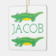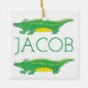 Ornament features an original marker illustration of a green and yellow alligator or crocodile. Just personalise with your information.