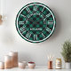 Green And Black Buffalo Plaid Rustic Roman Numeral Large Clock