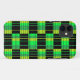 Protect your cell phone in style with this phone case that features a funky pattern including checkers and stripes in various shades of green and black. Available for a variety of phone styles.