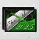Green and black graduation card with a diploma and year of graduation on it. The back is a black background with green lettering for the graduation party invitations.