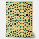 A playful abstract pattern featuring green and black polka dots of varying sizes on a soft yellow background. The dotted design creates a lively, retro-inspired look, perfect for adding a fun touch to any space.