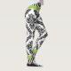 Black and white damask pattern and stripes leggings. A cute retro black and white damask pattern, a green band and black and white stripes on the top and bottom adorn this cool pair of leggings.