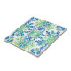 a decorative pattern design in green and blue colors featuring lots of abstract geometric elements on a ceramic tile.