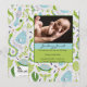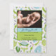 This precious photo baby announcement is the perfect way to let everyone share in your joy! The background is white with a cartoon baby animal pattern in lime green, blue, and dark green. There is a place for your photo with a dark green border. There is a blue box to place your name in and below that is a lime green box with your baby statistics. The text is completely customisable!