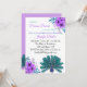 Green and Blue Peacock | Purple Watercolor Flowers Invitation