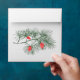 Square holiday envelopes with a blue and green pine pattern on green, created from a vintage etching. Customise It to add your custom text, even save your design for later.
