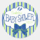 Green and Blue Stripes Baby Shower Classic Round Sticker