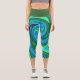 Green and Blue Swirl - Cool Abstract Psychedelic Capri Leggings
