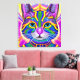 Cool robot steampunk kitty cat with mystical blue eyes and colourful fur psychedelic AI generated art.