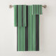 Green and charcoal five stripes pattern bath towel set