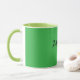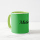 Green and Chartreuse green coffee mug with black text, ready to personalize with your own name/text. Cursive handwriting.