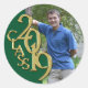 Class of 2019 graduation year photo sticker in green and gold, picture perfect for favours and invitation envelopes. Upload a favourite snapshot of your graduate and add text if preferred.