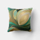 A very modern looking leaf design in green and gold creates a beautiful and stylish throw pillow.