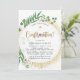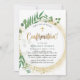 Modern botanical gold and green Confirmation invitation featuring spring floral arrangement and gold frame, Confirmation script in trendy gold lettering and details in modern block lettering.