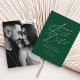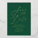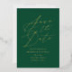 Announce your upcoming wedding in style with our Minimalist Calligraphy photo save the dates. The elegant save the date cards feature the words "Save the Date" in a gold foil script with your names, wedding date, & location featured below on a green background. The back of the save the dates features your favourite engagement photo.