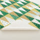 This Sherpa blanket has a Christmas trees pattern in a minimalist style of geometric triangles design. This is the green and gold colorway. You can make the pattern on this blanket smaller or bigger. A cute modern Christmas patterned blanket that will be great in your house for your green and gold Christmas decor.