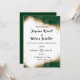 This wedding invitation features a rich emerald green and gold theme. The design includes a luxurious shiny gold border that blends with the deep green edges, creating an elegant and sophisticated look to celebrate your special day.