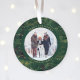 This modern Christmas ornament features a rich, dark emerald green background with elegant faux gold fairy lights, and two of your favorite personal photos. Add your family name in gold colored text.