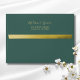A dark emerald forest green 5x7 envelope with a faux Gold foil Lining Inside. This elegant and sparkly metallic green and gold all purpose envelope is a classy way to send invitations. You can customise and personalise your name and address on the back flap.