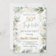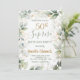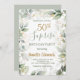 Elegant 50th Birthday Party Invitation bordered with greenish and golden leaves in watercolor style.
