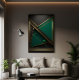 Abstract geometric design combining green and gold tones, creating a harmony between nature and luxury. Precise shapes and vibrant contrasts convey balance and sophistication.