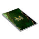 This notebook features an elegant and glamourous agate marble background with geode gemstone detailing and faux gold glitter accents. The monogram combines handwritten script and modern sans serif fonts for a classy and sophisticated look. This will make the ideal gift as it can be customised with a name and initial. The deep green hues make it perfect for autumn fall and winter.