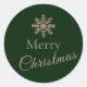 Green and Gold Merry Christmas Snowflake Classic Round Sticker