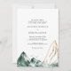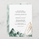 This green and gold mountain wedding invitation is perfect for your elegant boho mountain forest wedding. With a rustic emerald green watercolor landscape dotted with trees, birds, and highlights of gold foil. It's just what you're looking for to complete your unique modern destination wedding.