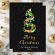 This elegant and chic holiday card can be personalised with your family name. The design features a green and gold ribbon Christmas tree with baubles. The text combines handwritten script and modern sans serif fonts for a classy and sophisticated look. The falling snow, snowflakes and sparkles give a festive and magical touch.