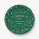 Gold stars on green background graduation party paper plates featuring your class year and graduate's name. Also, you are able to change background to any colour you want by clicking customise this design.