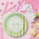 Green and Gold Striped Personalised Baby Shower Plate. Just add in either mum to be's or baby's name in the customise area.