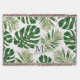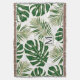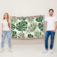 Green and gold tropical leaves and monogram throw blanket. This design features leaves of Split Leaf Philodendron (Monstera deliciosa) or Swiss Cheese Plant and palm leaves in green with gold outline and your monogram in black.