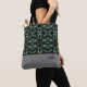 A classic look with a modern twist, this abstract design of green gran and black tote is stylish.