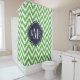 Green and Navy Chevron Monogram Shower Curtain