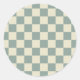 Green and Pale Yellow Chequerboard Classic Round Sticker
