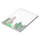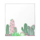 A pretty notepad featuring watercolor cactus is shades of green and pink.