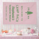 The Green and Pink Camp Bach Bachelorette Weekend banner has a charming and straightforward design. The background is light pink, creating a soft and inviting atmosphere. The text, presented in a bold and large font, is green, ensuring it stands out prominently against the pink background. At the top, there is a simple illustration of a fir tree, adding a touch of nature and hinting at a camp or outdoor theme. Overall, the design is clean and effective, conveying the theme of the event with elegance and clarity.