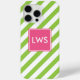 Green and Pink Diagonal Stripes Monogram Case-Mate iPhone Case