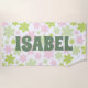 Green and Pink Groovy Floral Custom Name Beach Towel