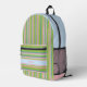 Green and Pink Striped Monogrammed Printed Backpack