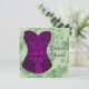 Black damask green and purple corset bridal shower invitation. Add your details to the front and back by adding your event details, font style, font size & colour, and wording.