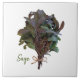 This ceramic tile can be used as a trivet or decoration. It is available in two sizes. This picture includes a bouquet of green and purple sage from my herb garden that is held together by twine.