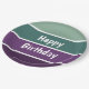 A green and purple horizontal striped pattern and the text: Happy Birthday. You can click personalise and edit the text. Write two words in one line.
