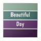 A green and purple horizontal striped pattern and the text: Beautiful Day. You can click personalise and edit the text. Write two words in one line.
