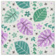 Green and Purple Tropical Monstera Leaf Pattern Fabric