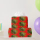 A shot of a red and green Christmas Decoration closeup with a red frame. That's