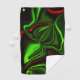 Image with green and red curves with light shades in some parts, and thus referring to some shiny material like metal.